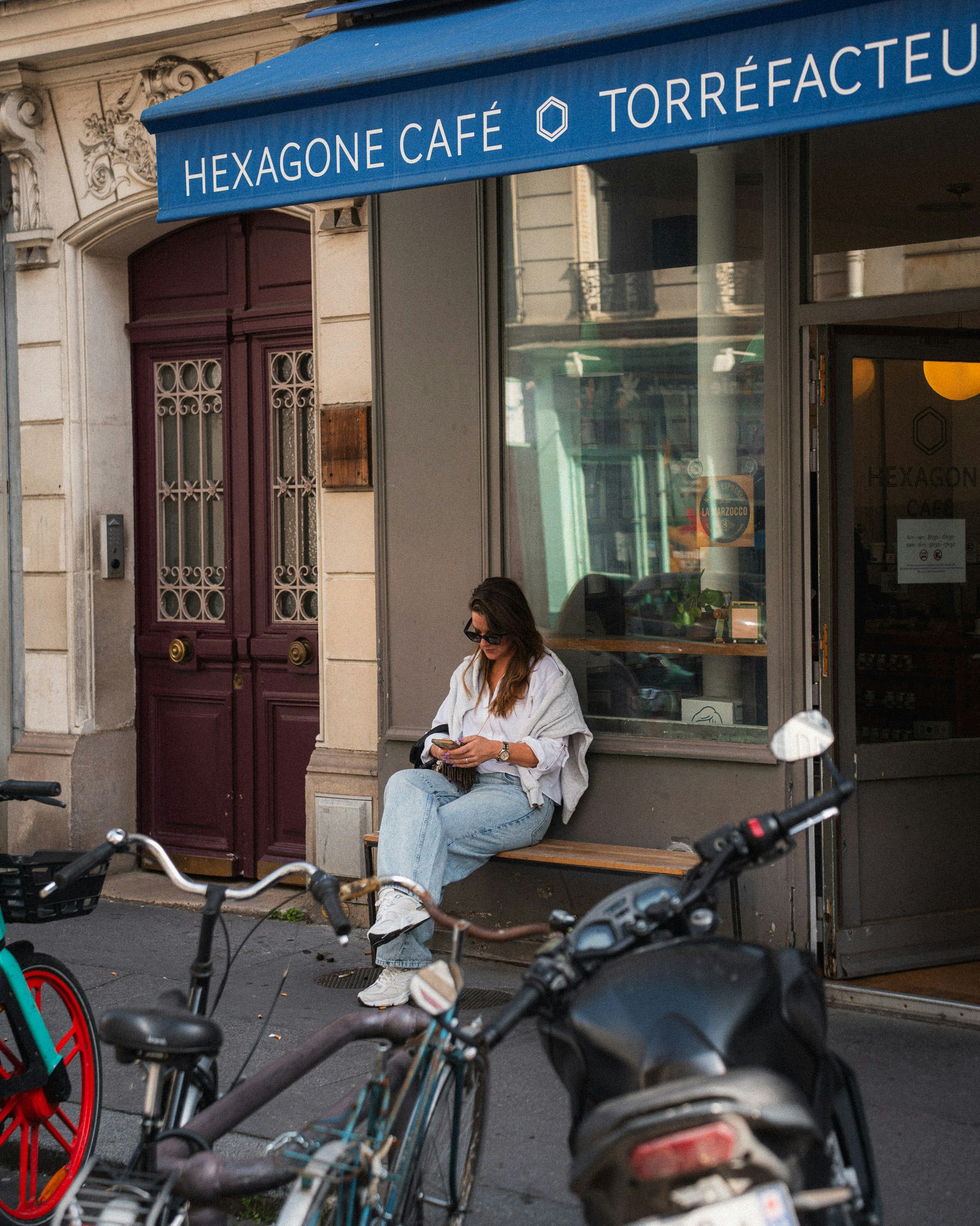 We made a slow loop through Rue de Thermopyles, grabbed coffees at Café Hexagone — small, simple, no Wi-Fi signs screaming from the wall. Exactly how a café should be.